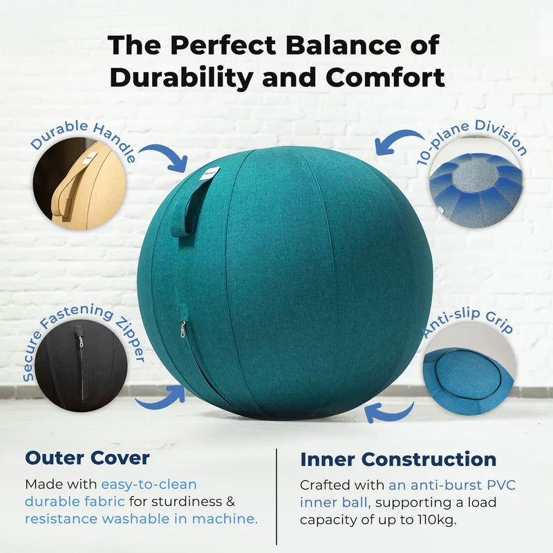 The sitting ball is made with an anti-burst PVC inner ball and a woven fabric cover, which provides a load capacity of easily 110kg.